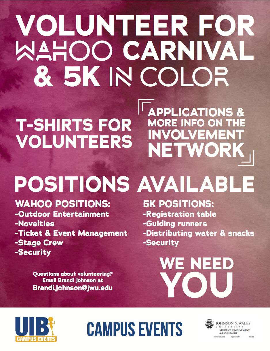 These peripherals were created for Johnson & Wales University’s Annual Wildcat Wahoo Carnival and 5K . As the Street Team Coordinator for the Wahoo Weekend events I was responsible for creating the weekend’s branding, advertising, marketing, social media posts and apparel. Being chosen to work with the Wahoo Committee members and professional staff throughout the university was a very rewarding opportunity.